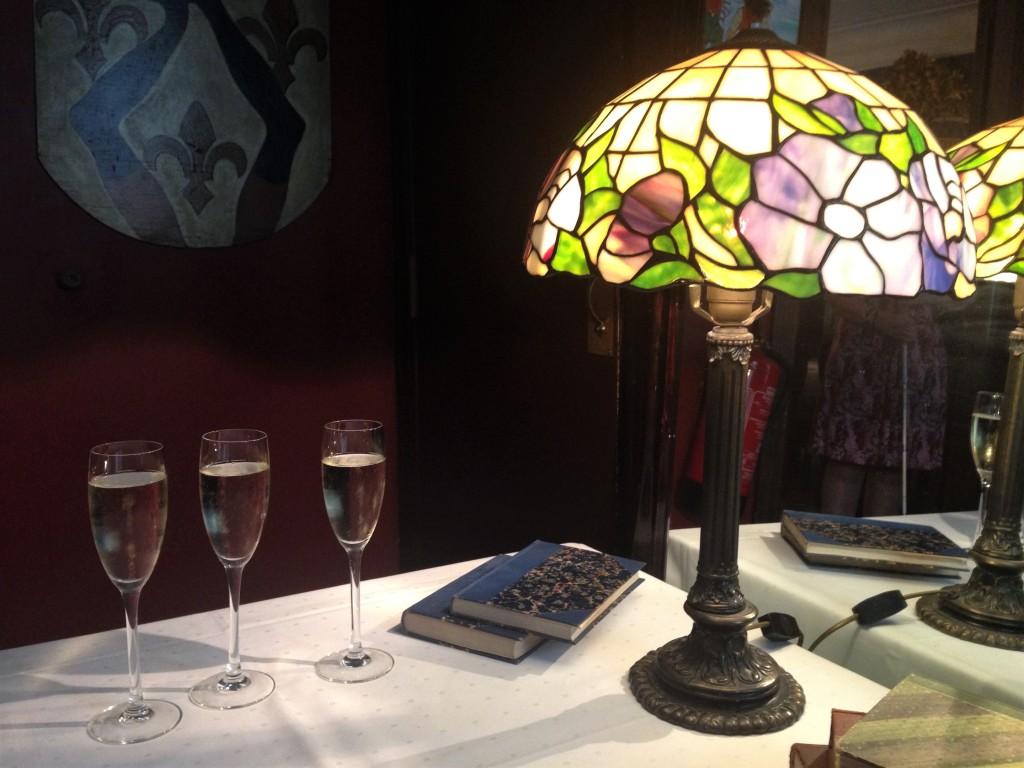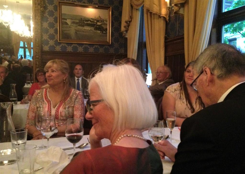 Vi var 68 festkledde og forventningsfulle gjester som inntok den flotte festsalen i 2. etasje. Der fikk vi et glass i hånda, før Kari ropte opp alle navnene og anviste oss plass på trivelige småbord.