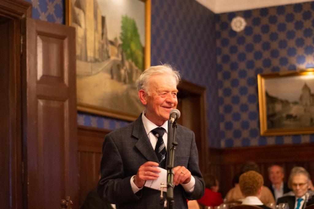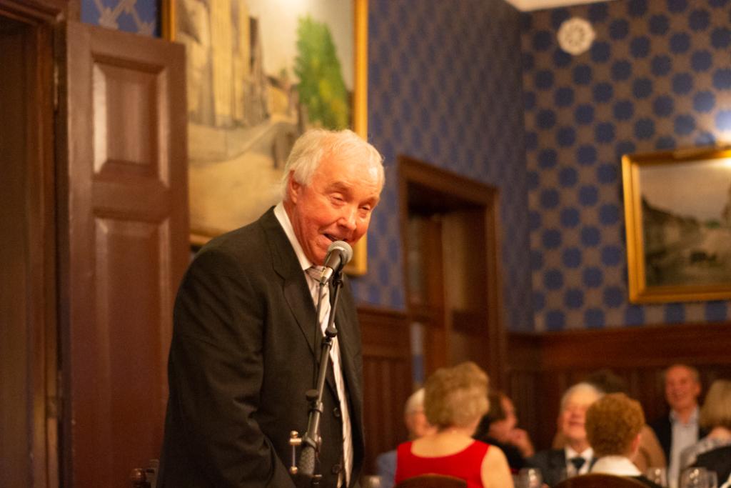 Middagen ble avsluttet med en spirituell takk-for-maten-tale ved Thor Bye. Både festkomiteen og vertskapet på Engebret ble behørig takket for flott fest og god mat.