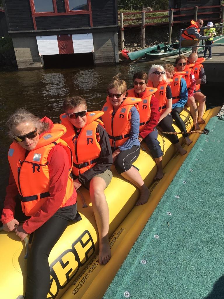 Etter lunsj var det aktivitet / full fart på Hurdalssjøen med Jan Helges rib med 300 hestekrefter. Den såkalte «bananen» med plass til åtte personer, ble trukket i vill fart og de som satt på, fikk bokstavelig talt bakoversveis.