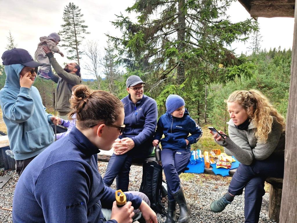 Lørdag før lunsj kunne man velge mellom basseng og hinderløype i gymsalen. Etter hvert samlet samtlige seg i bassenget til felles lek hvor både voksne og barn deltok. Etter lunsj kjørte vi i samlet tropp til Parkeringsplass ved Byfellavegen, klare for skogstur med Tiril Andersen som turleder. Tiril har lang erfaring i å ledsage synshemmede på turer i skog og fjell, og kunne gi mange gode tips om ledsaging. Turen gikk på skogsvei til Vingerdalstua. Der hadde vi reservert en gapahuk og fått ved til disposisjon. Det ble stekt marshmellows, kjeks og sjokolade og en improvisert quiz ble avholdt. På veien hjem ble det for de ivrigste en tur i mer ulendt terreng med god støtte og veiledning fra Tiril. Etter middag var det konsert i Hammersborg, der vi fikk høre på ulike sanger fra deltakere i «bandcamp» avholdt samme helg.