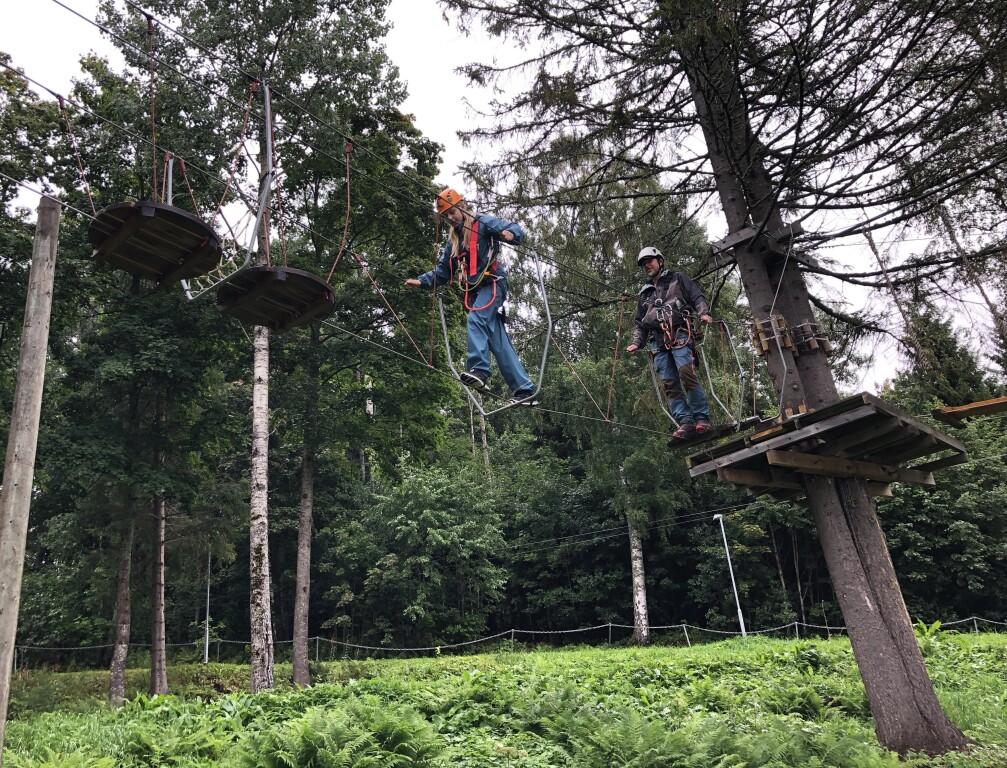 Etter lunsj samlet de fleste seg ved høydebanen og zip-line. Flere varianter ble praktisert, noen baklengs, noen med blindfold og andre klatret mot «kjøreretning».