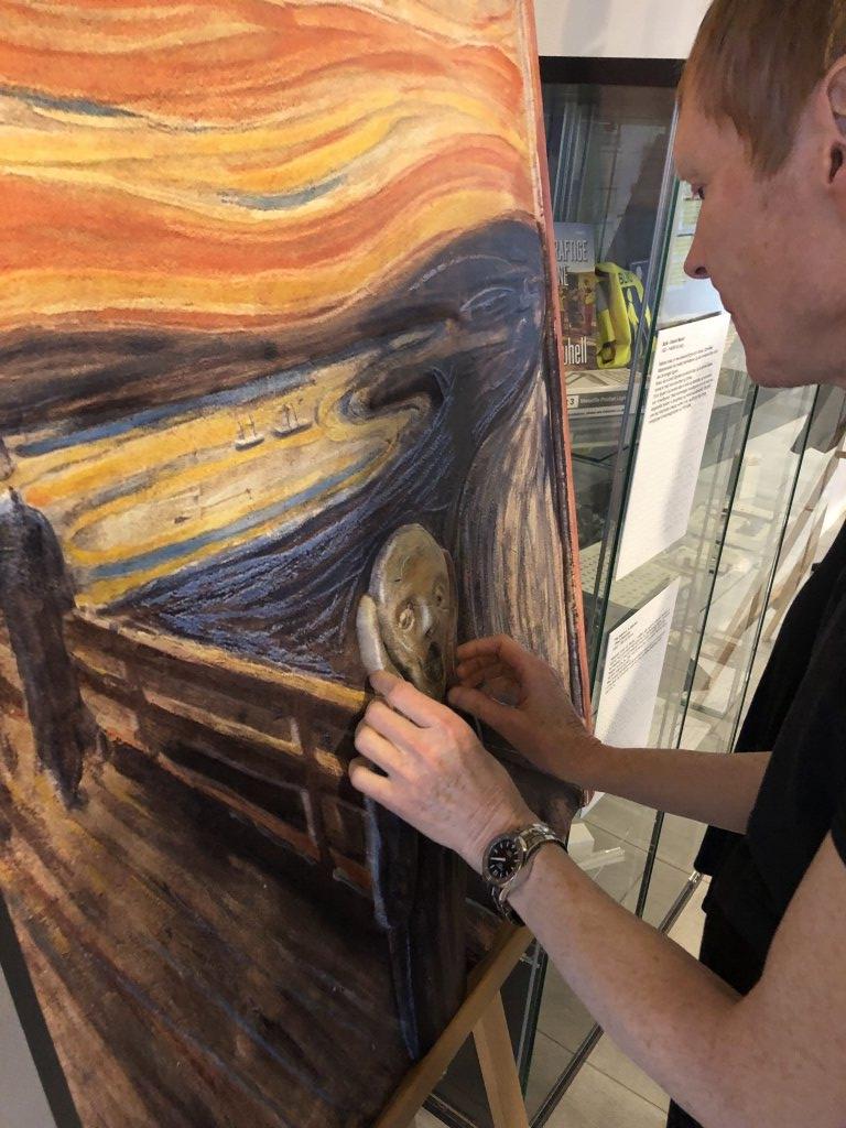 Kunstpause: Lars studerer 3D-utgaven av Munchs "Skrik".
