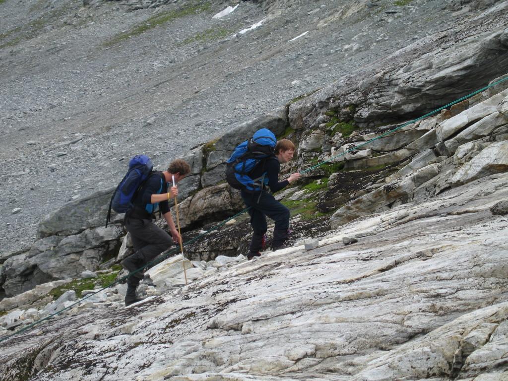 Lars og Bjørnar drar seg i tau opp Pyttskavlen (smeltet bort).