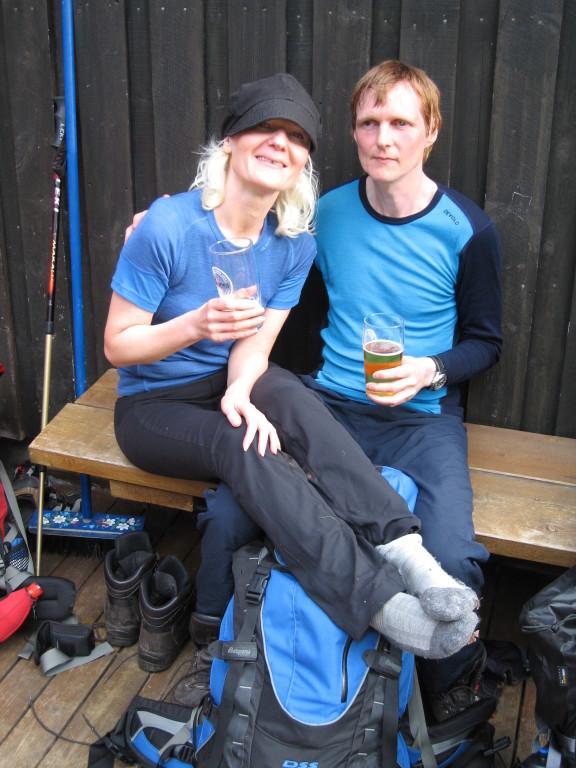 Stine og Lars lesker strupen på trammen ved Kaldhusseter.