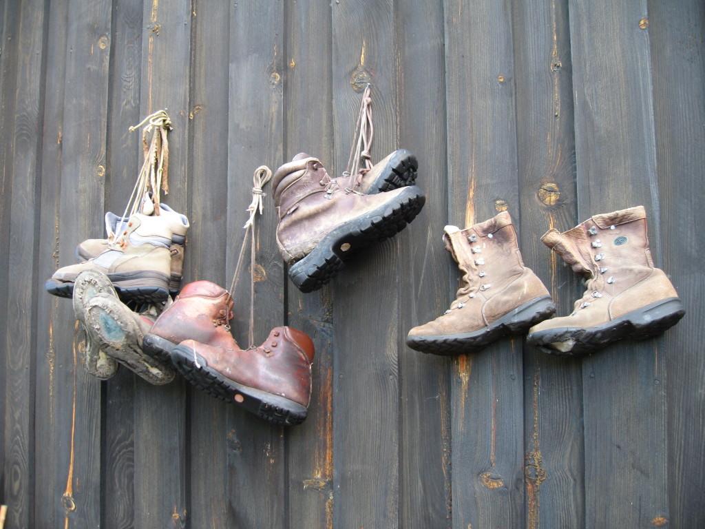 Utgåtte støvler til pynt på veggen, bl.a. Arild Hovsliens fra 2002.