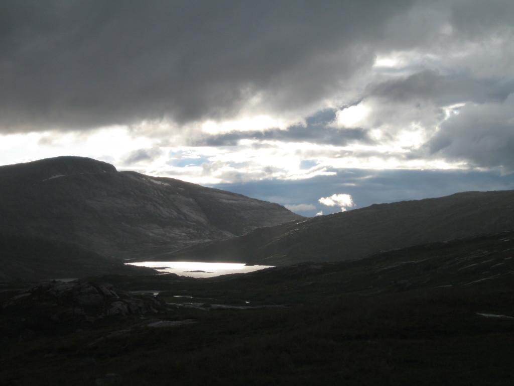 Dag 5 Viveli – Stavali 20 km 5,5 timer i følge DNT. Vi fulgte Vivo sydover. Mere myr ga påfyll i støvlene. Vi dreide vestover, passerte Vivhellerhamrane, gikk syd for Reinavatnet, kom ned til Lonavatnet og krysset Tverrelvi på bruer før vi ankom Staveli på 1024 m.o.h. Vi hadde i løpet av dagen vært oppe i ca 1200 m.o.h. Der er det stølsdrift om sommeren, og hytta er delvis betjent. Vi koste oss med rømmegrøt og spekemat på kvelden. Godt å slippe matlaging. Men morgenen etter var det vask i følge liste i gangen. (bilder 070 – 076)