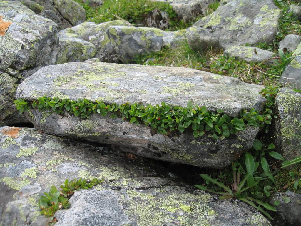 Naturens sandwich: Planten Musøre struttende ut mellom steinblokker.