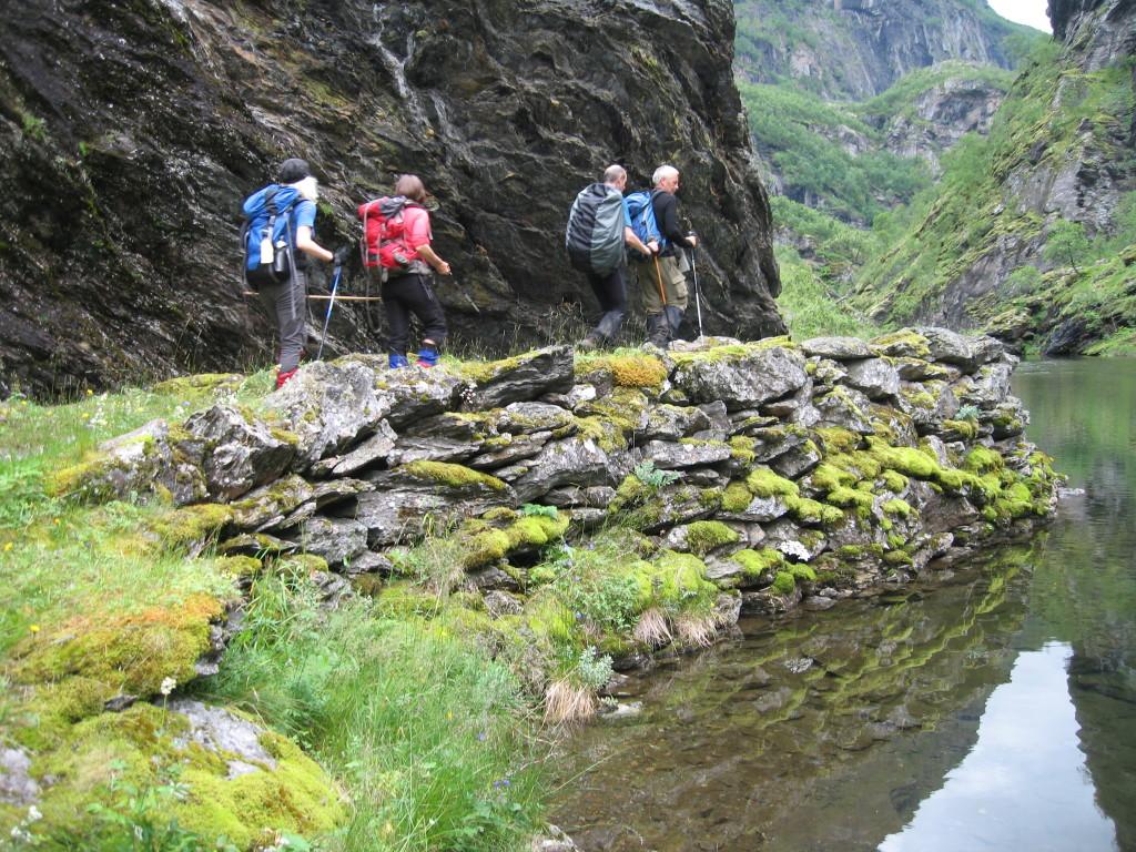 På oppbygd passasje langs elva i Aurlandsdalen.
