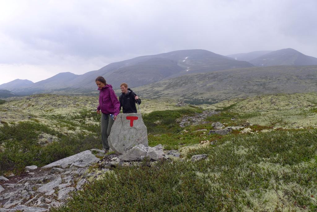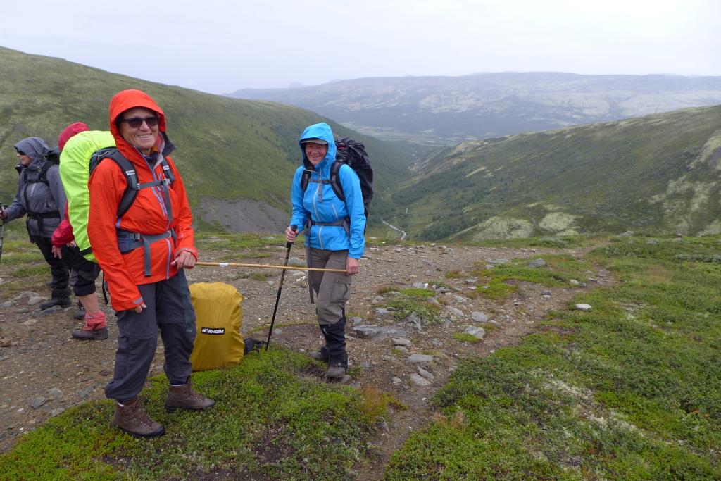 Unni og Inger-Marie med regntøy fra Grimsdalshytta.