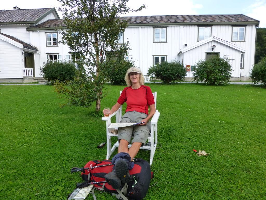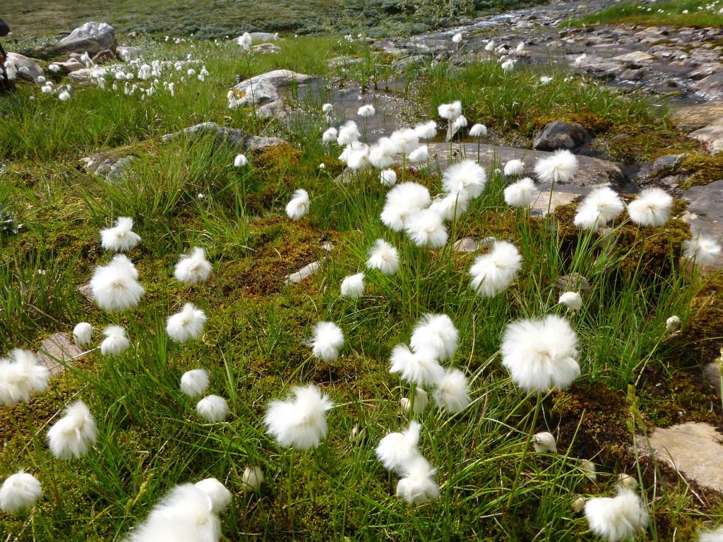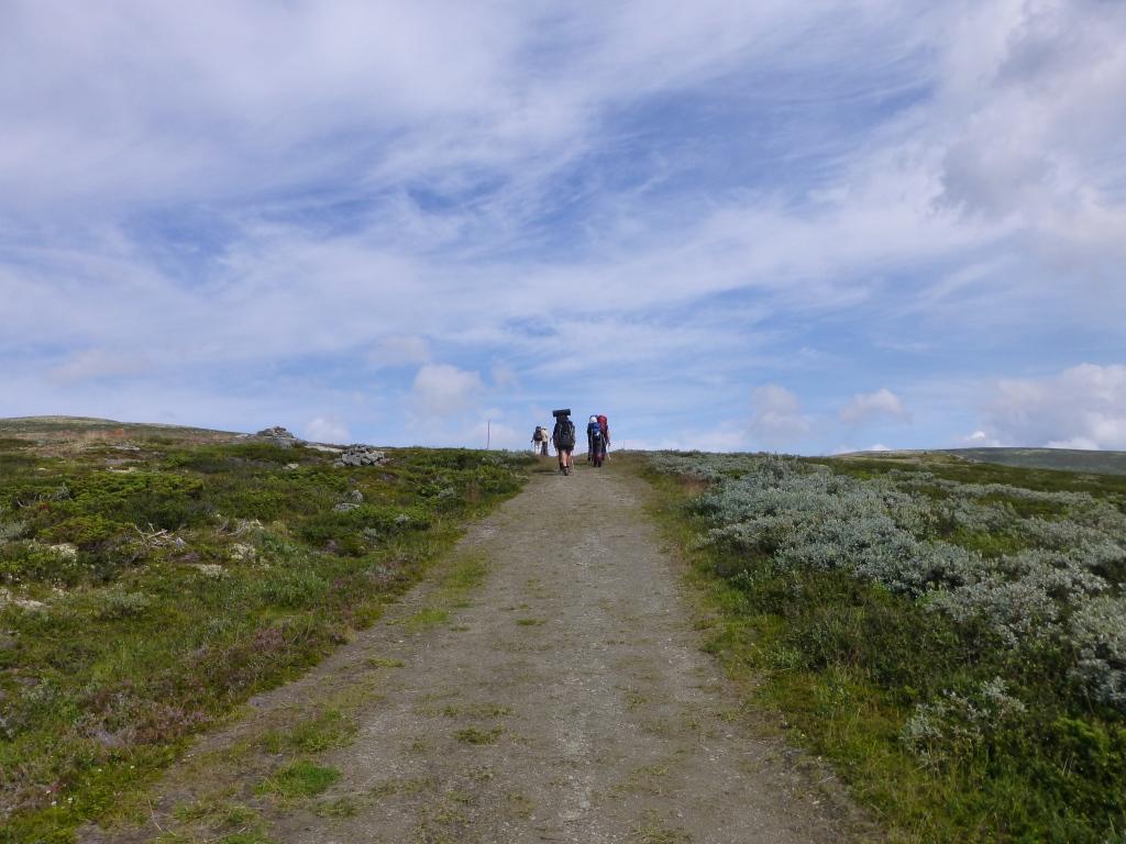 Torsdag 7. august hadde vi Kongsvold som mål. Den ligger på 900 m.o.h. Etappen var ca 16 km med dagens høyeste punkt på 1200 m.o.h. Vi passerte Hjerkinnshøi. Etter noe stigning, kom vi til Vesle-hjerkinn. Der var det gamle hustufter. Det har stått hus her helt fra Vikingetiden. Det var hvilested for pilegrimer og andre reisende, også konger, til langt ut i Middelalderen. Neste stopp var Hjerkinn Fjellstue. Det var deilig vær, og vi nøt kaffe, is og andre godsaker stedet kunne by på. Utsikten mot Hjerkinndammen og gårsdagens etappe var upåklagelig. Vi fortsatte, gode og mette, på Kongevegen og kom etter hvert opp i høyden med utsikt mot Snøhetta. Det var lett å gå, og vi holdt godt tempo. Denne strekningen er også en del av den gamle pilegrimsleden til Nidaros. Kongsvold var et sted med historisk sus. Husene var godt tatt vare på. Middagen var både pen og god. Til forrett vanket det moskuspaté. Vi koste oss. Etterpå tok vi en titt på fjell-hagen som Thekla Resvoll (1871 – 1948) hadde anlagt. Hun var botaniker og en dame forut for sin tid.