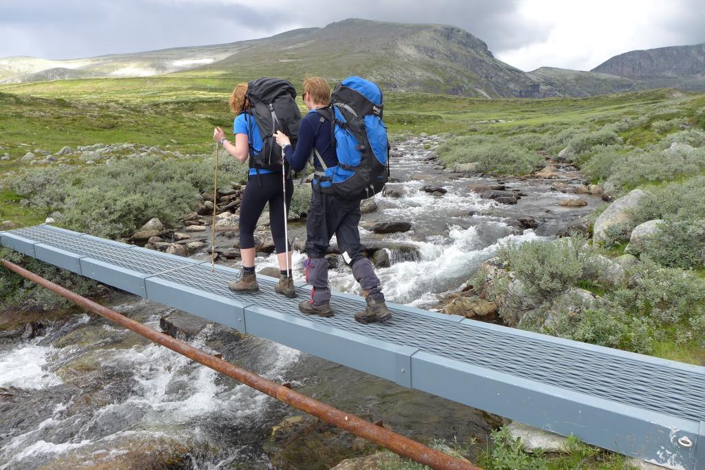 Lars og Line over smalt brospenn på vei mot Reinheim.