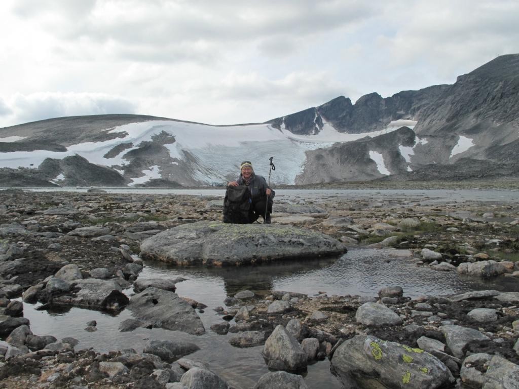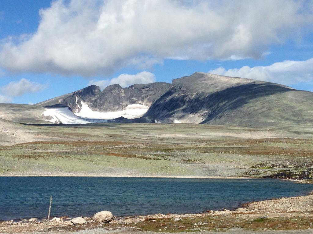 Lørdag 9. august tok vi fatt på den siste dagsetappen. Den var på bare 7 km. til Snøheim. Vi passerte på østsiden av Snøhetta. Det var overraskende mye steinur, selv om vi var langt fra toppen. Men det var tørt og fint. Noen av ledsagerne “fikk fri” så de kunne ta seg en velfortjent topptur. Siden vi kom tidlig fram til Snøheim, gikk vi dem i møte. Området byr på vakker natur med den mektige Snøhetta på 2286 m.o.h. tett på. Om kvelden spiste vi nok en herlig middag og spilte brettspill etterpå. Utover natten økte vinden på ute, og Drengestugu, som de fleste av oss sov i, ristet i vindkastene.