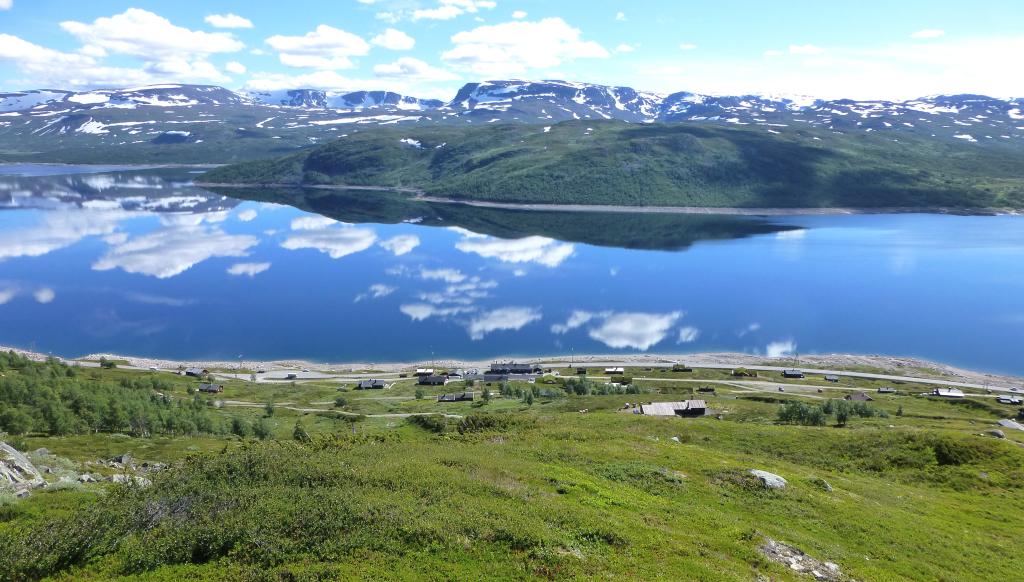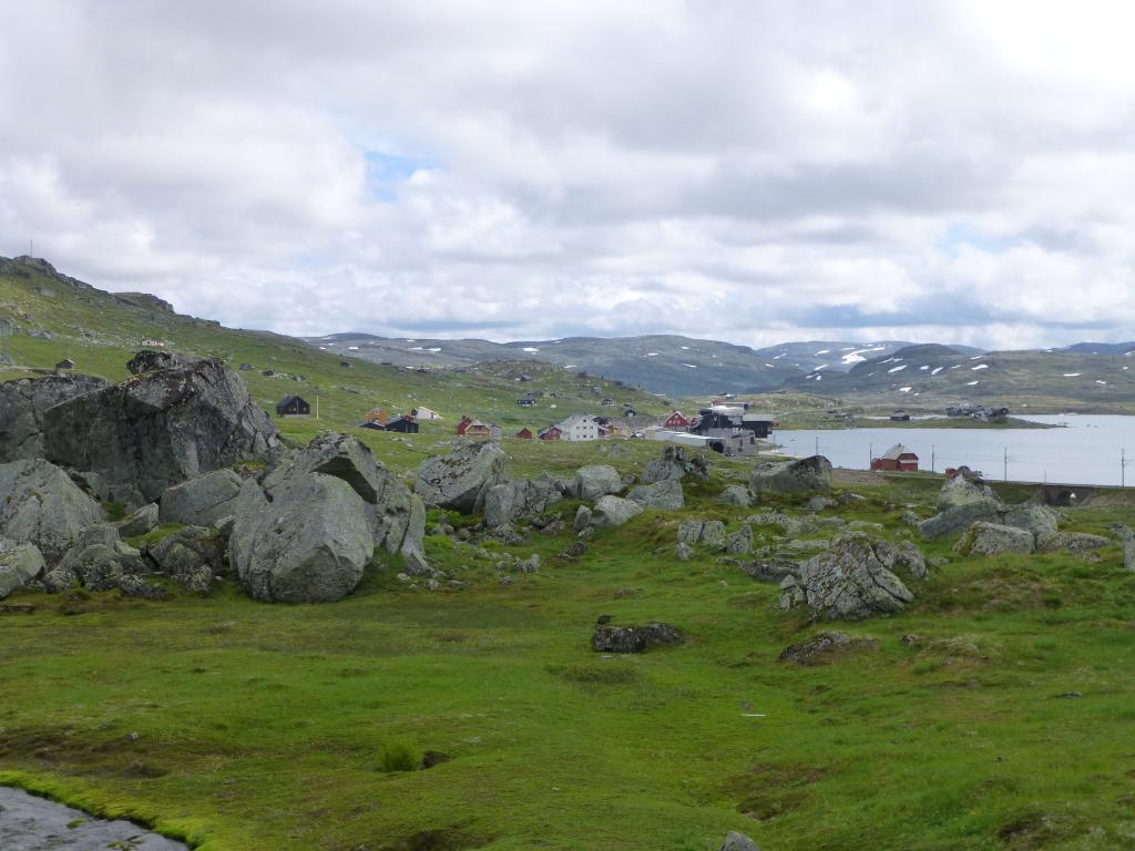 Finse, både grønt og karrig, 1222 moh, og den høyest beliggende stasjon på Bergensbanen.