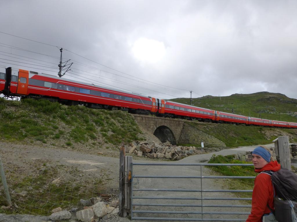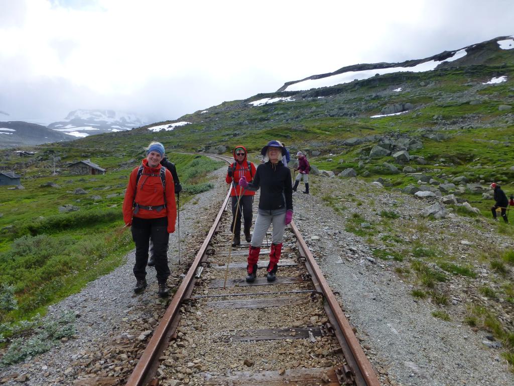 02.08. Vi gikk en dagstur og fulgte Rallarvegen fra Finsehytta. Etter ca. 10 km, mellom Finse og Hallingskeid, kom vi til Fagernut vokterbolig, 1342 moh. Dette er den høystliggende vokterboligen langs Bergensbanen. Her driver Rallarmuseet kafe om sommeren, og frister med nystekt Rallarvaffel. Det var stinn brakke og sivilisert kamp om sitteplassene. Ikke alle fant stol i det oppvarmete lille kafelokalet, men det var tross alt plass til alle innendørs, og det er godt når det regner ute. Selv om det var «pass opp for sykler» i to retninger, var turen lettgått med grusvei hele veien. Vi returnerte uskadde til Finsehytta etter ca. 6 timer.