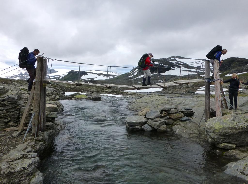 Over hengebru, med Else midt på og Jøkulen i bakgrunnen.