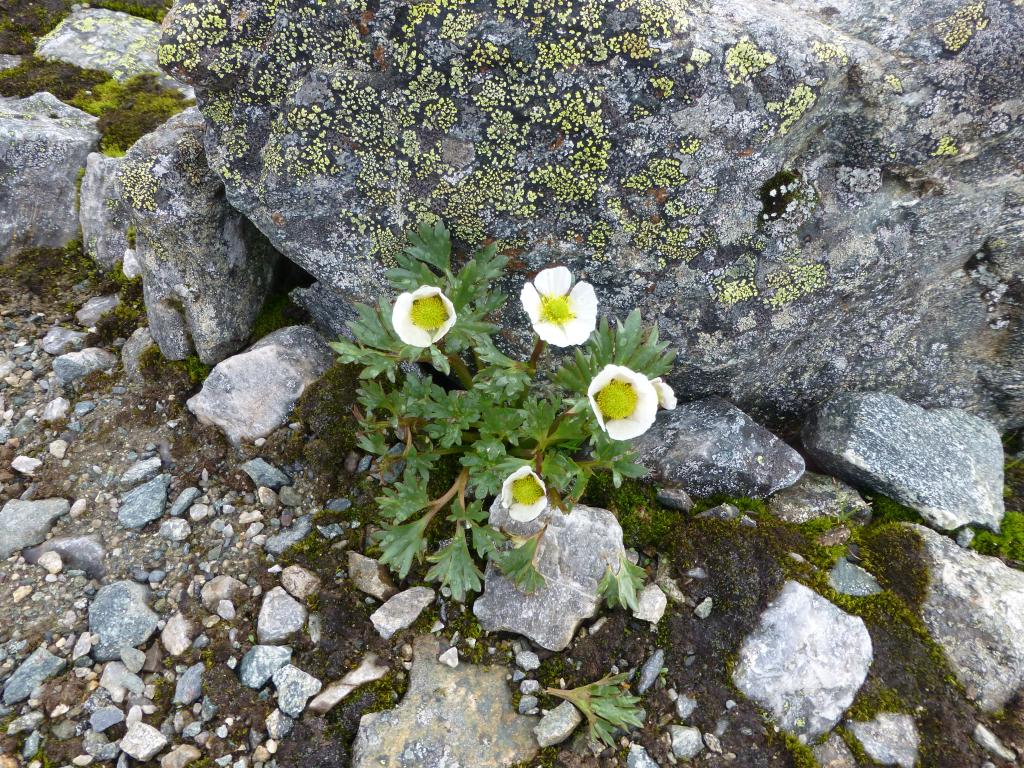 Blomsten Gulsildre lyser opp været på vei til Kongshelleren, 1450 moh.