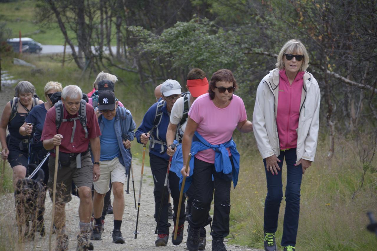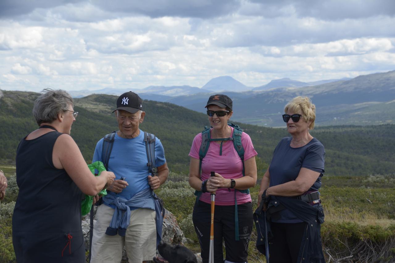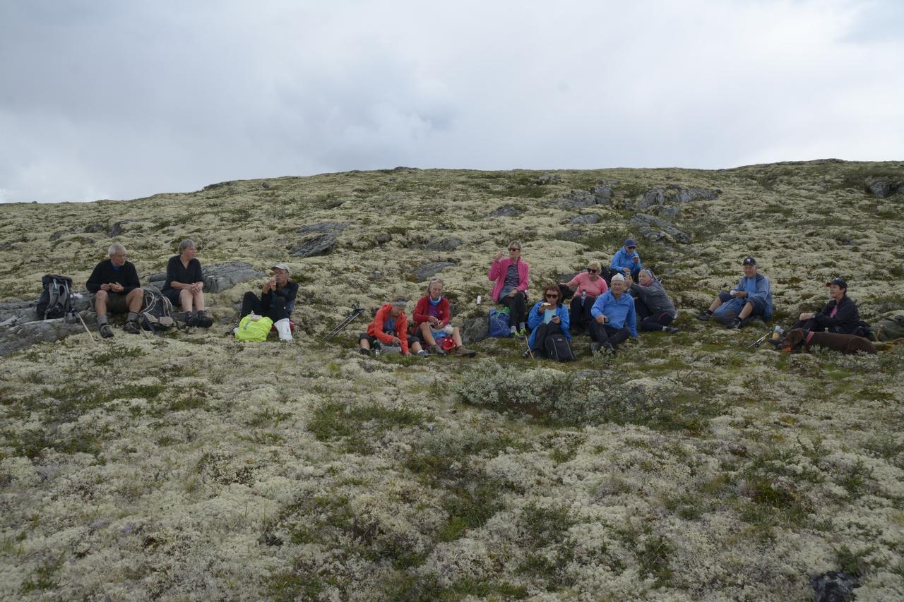 Fjorten personer og to hunder på tur til fjells. Hodrs fjelltur fast opphold hadde i år Hjerkinn fjellstue som base. De fleste kom med tog og vi ble hentet på stasjonen og kjørt til fjellstua. Der møtte vi de som kom med bil og etter en times tid var vi installert i våre rom og vi la ut på første tur ved 14-tiden. Folk var lite lystne på å gå på vei så vi la i vei oppover den gamle kongeveien/pilgrimsleden mot Hjerkinnshøe.