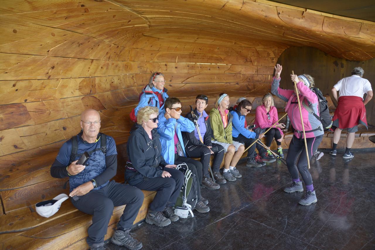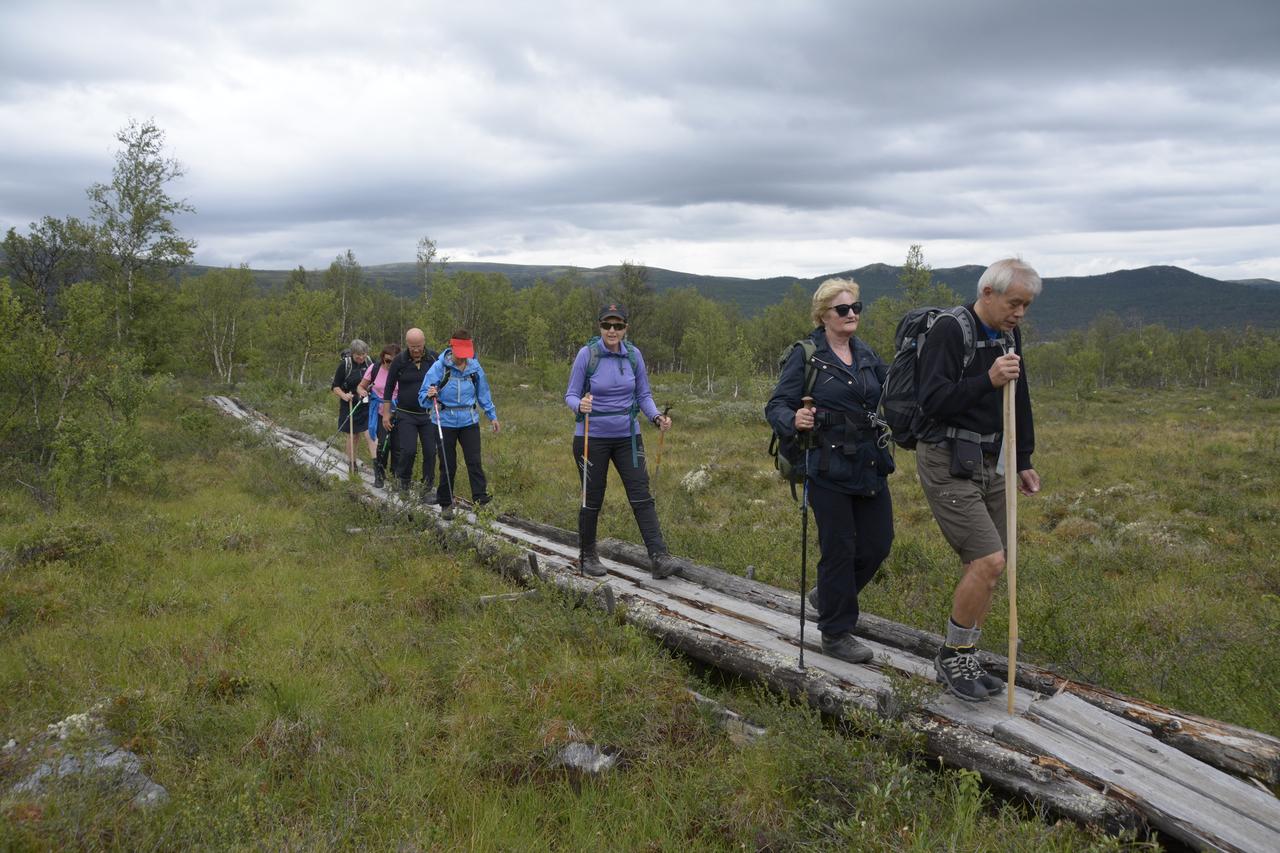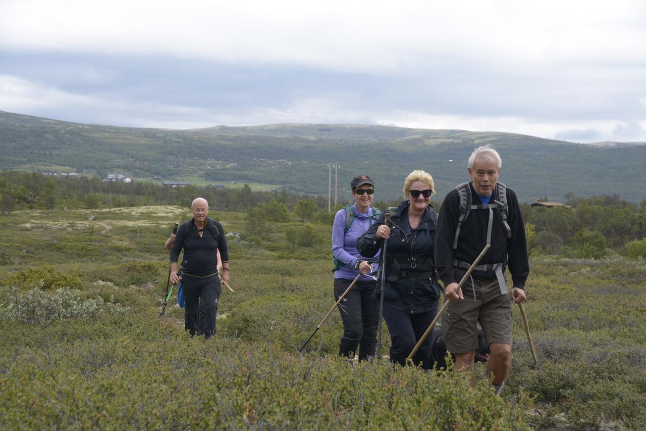 Fjorten personer og to hunder på tur til fjells. Hodrs fjelltur fast opphold hadde i år Hjerkinn fjellstue som base. De fleste kom med tog og vi ble hentet på stasjonen og kjørt til fjellstua. Der møtte vi de som kom med bil og etter en times tid var vi installert i våre rom og vi la ut på første tur ved 14-tiden. Folk var lite lystne på å gå på vei så vi la i vei oppover den gamle kongeveien/pilgrimsleden mot Hjerkinnshøe.
