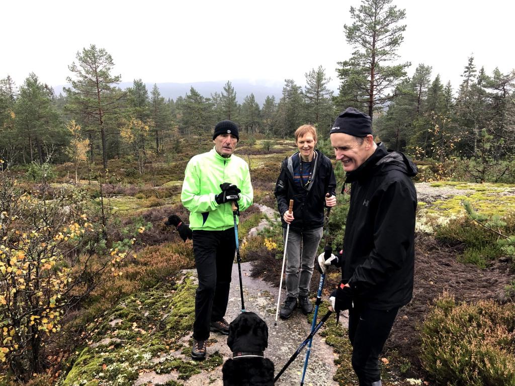 16 Hodr-ister - 8 synshemmede og 8 ledsagere - trosset koronafrykt og dårlig værvarsel og satte kursen fra Sørkedalen skole mot Kobberhaughytta kl 10:45. Behovet for mosjon og sosialt samvær var stort, og brakkesjuken i korona-tiden ble for plagsom. Aldersspennet var stort, fra 9 uker til 82 år. Dessuten var 3 hunder med og 2 barnevogner. Noen deltakere gikk på en kronglete sti og noen på skogsveien. Praten gikk også, og humøret var på topp, tross regn en del av tiden.