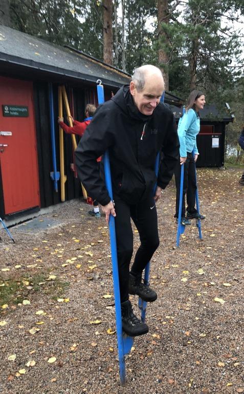 Jarle på stylter på tunet.