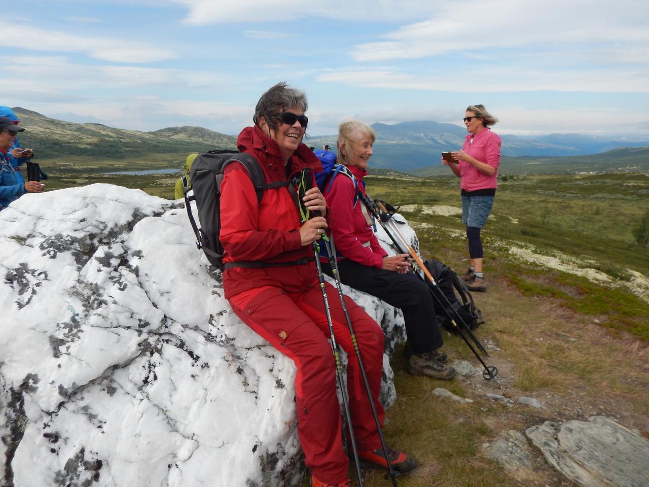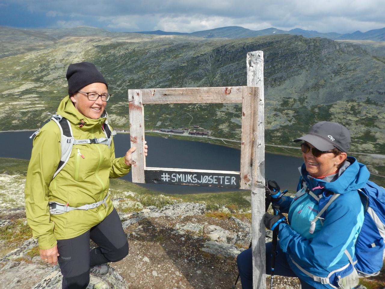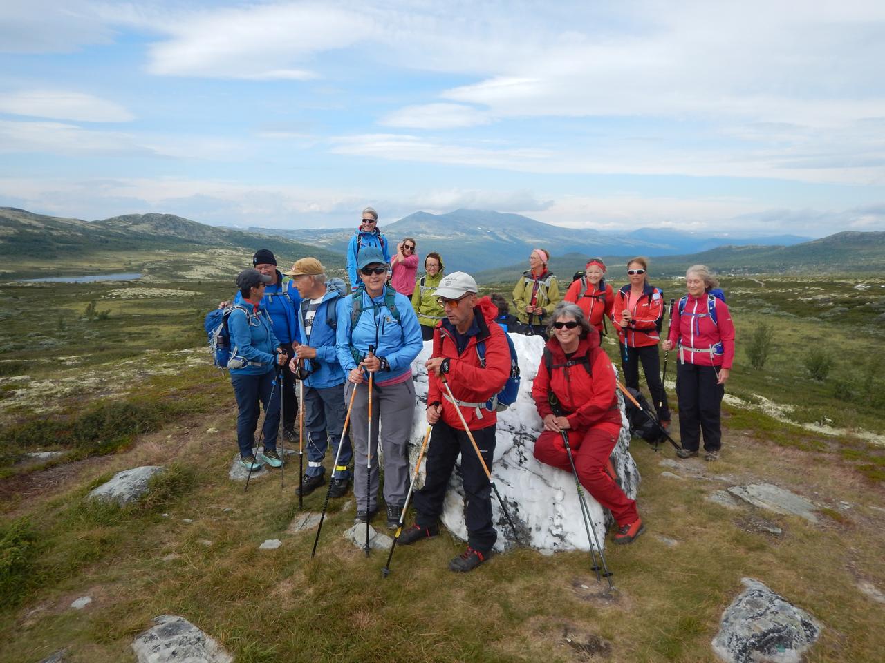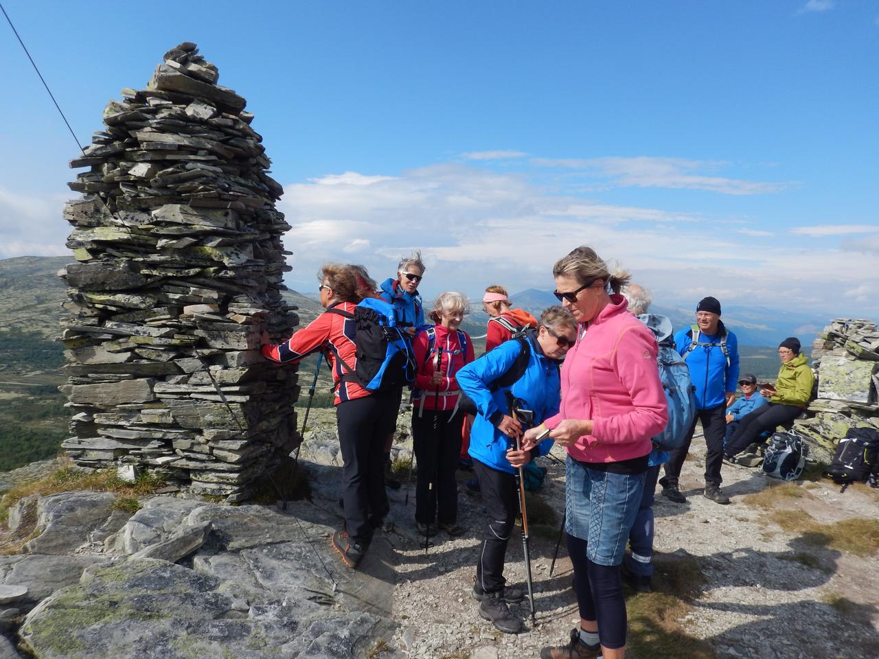 I dag planla vi også to alternativer da noen ikke ønsket å gå like lange turer som dagene før. Alle gikk til nevnte topper - ca 7 km tur/retur og de som ønsket en lengre tur, kunne gå videre mot Baksidevassberget via noen topper hvor de bl.a. fikk utsikt ned til Smuksjøseter, derfra på vei tilbake til seteren vår. Bent som tok den turen hadde 18 km på sin GPS.