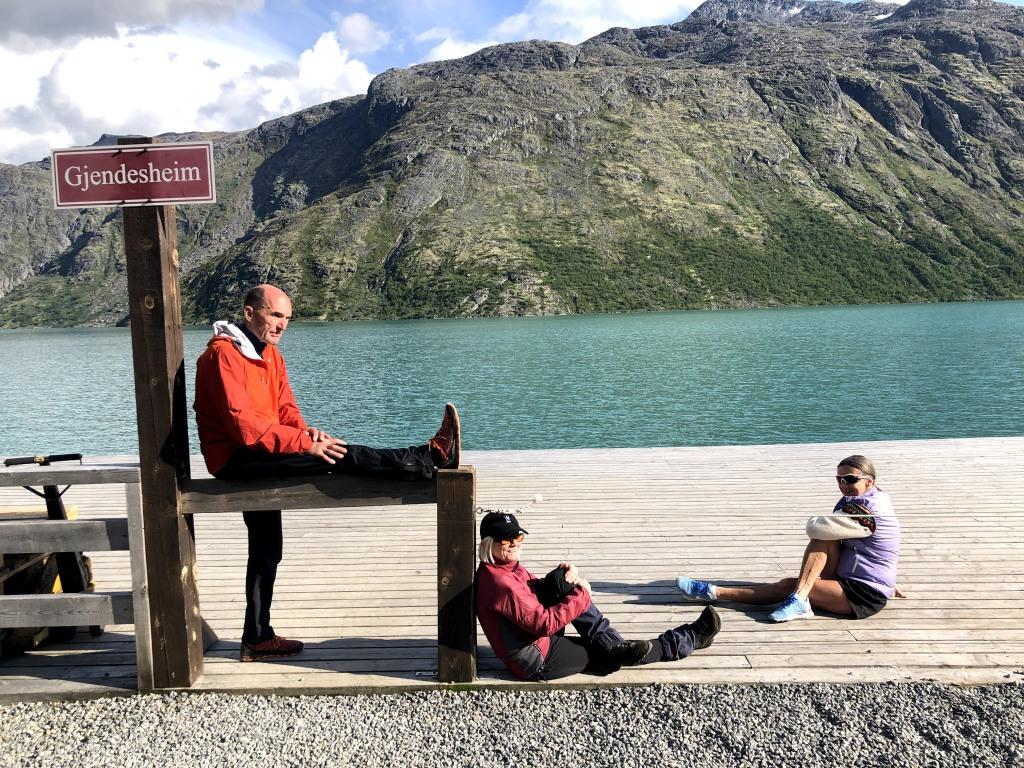 Vi skulle ta dagens siste båt fra Memurubu til Gjendebu. Den kom vi for sent til, og vi måtte shartre ekstra-tur med ferga etter en liten stopp på Memurubu. Vi ankom Gjendebu til god middag. Gjendebu har nylig hatt 150-års jubileum og er DNTs eldste hytte.