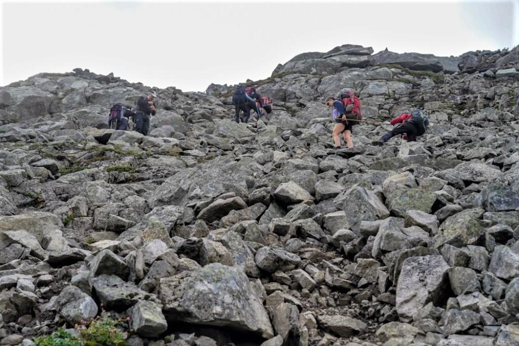 Vi klyver oss oppover brattene.