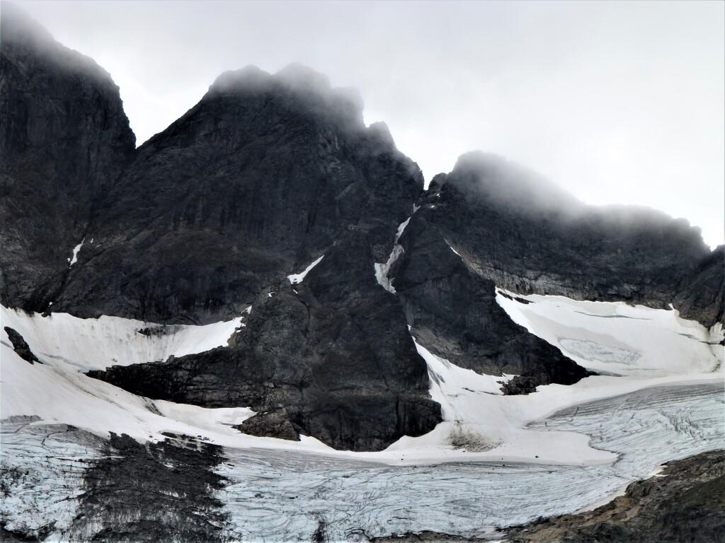 Høyt: Svarte pigger stikker opp fra isbreen.