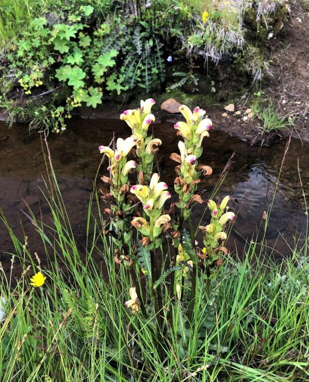 Blomst langs Bygdin: Den høyreiste og gulhvite blomsten kongsspir (Pedicularis sceptrum-carolinum).