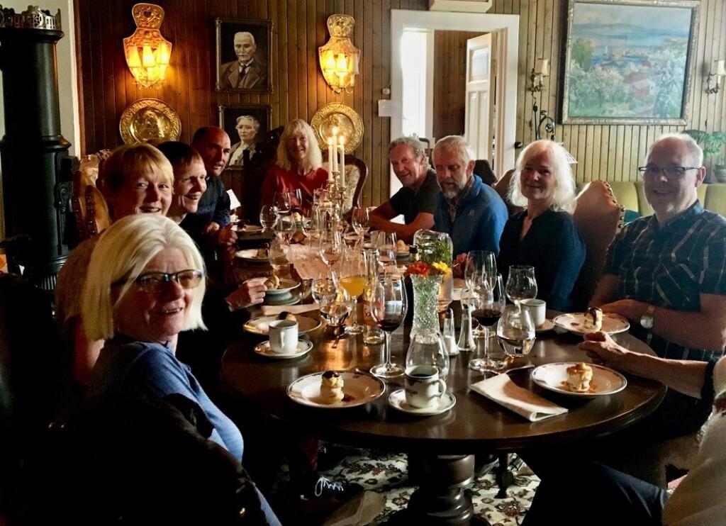 Langbord i Herresalongen: Vi nyter middagen i kandelaber-belysning.