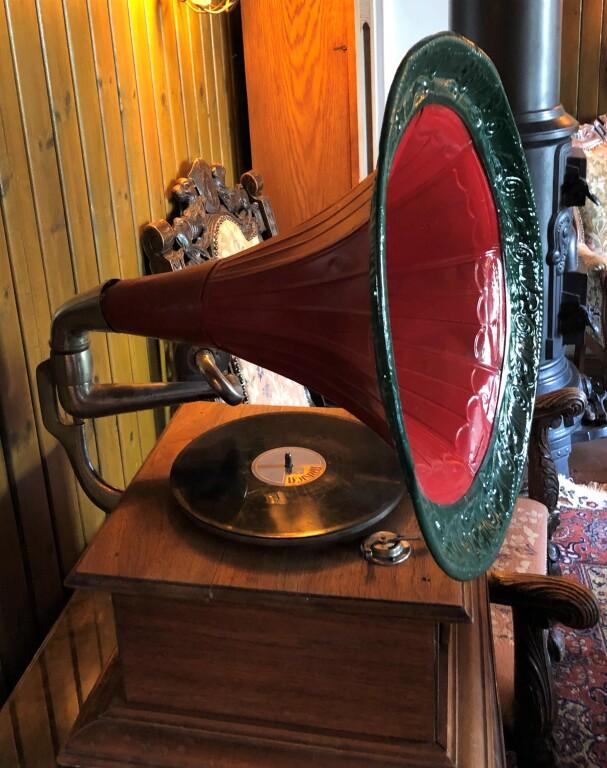 Interiør Bygdin Høifieldshotel 2: Sveivegrammofon med diger "trompet".