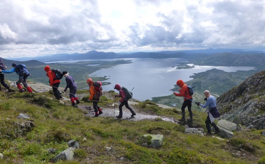 Gjengen på rad og rekke langs kanten med Vintstervatn i bakgrunnen.