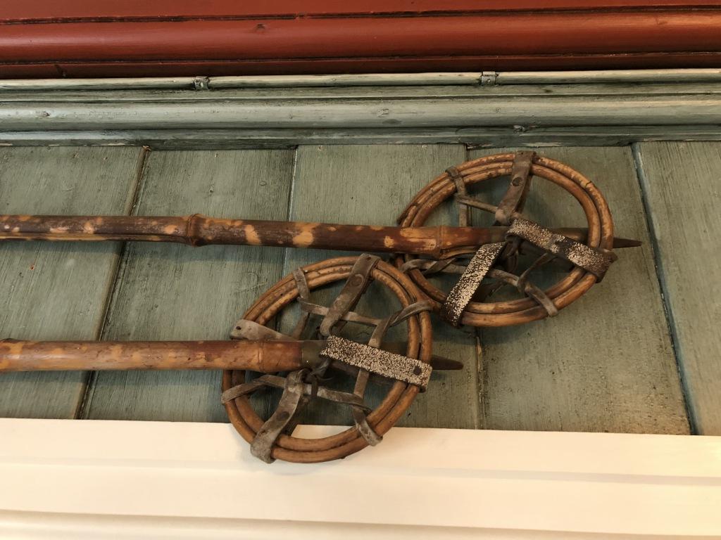 Interiørdetaljer 1: Gamle treski med vidjespenning til pynt på veggen.