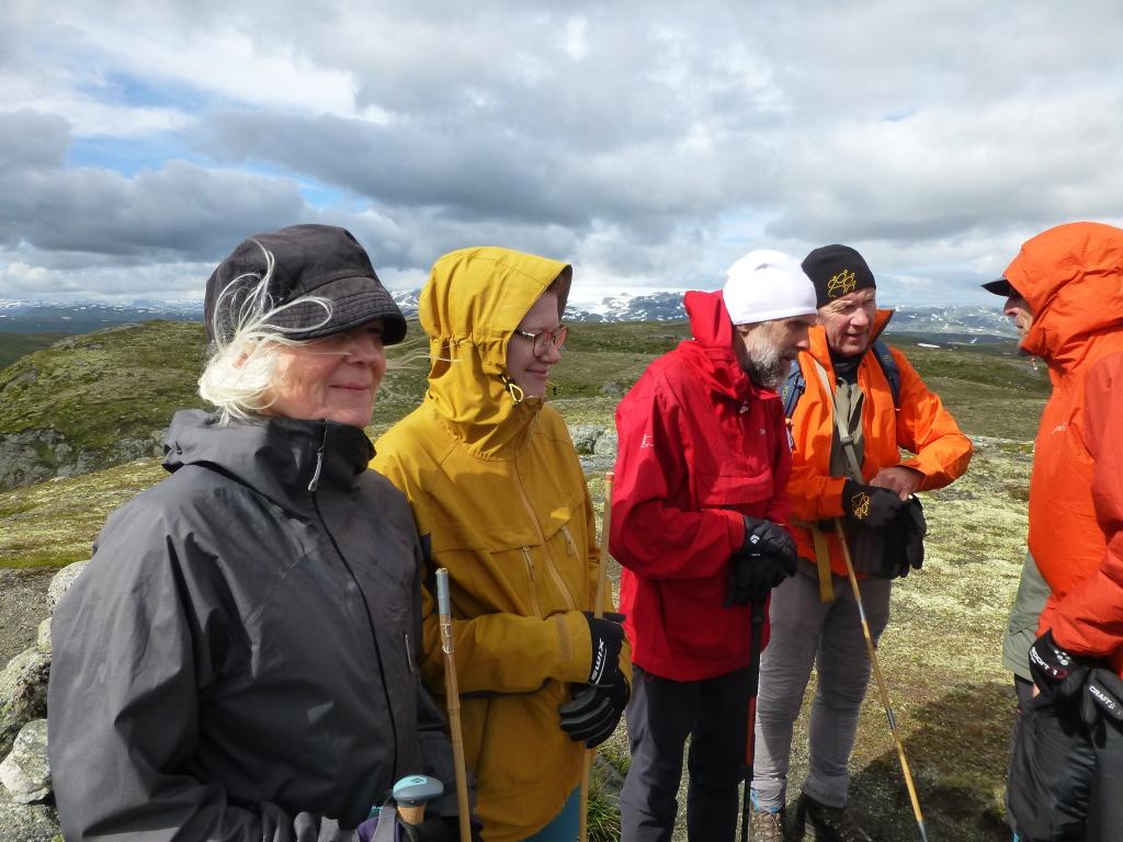 Vi tok tog fra Oslo til Geilo og buss videre til Dyranut på 1245 moh. Etter ankomst gikk vi en tur på ca. 5 km. opp til Dyranutene, en fin oppvarming før de lange etappene. Utsikten var fin over den relativt flate vidda. Sola skinte, men det blåste kraftig og det var heller kjølig.