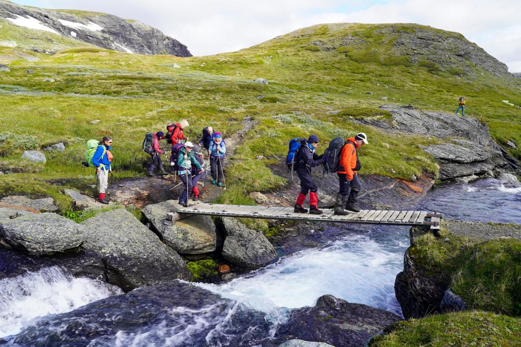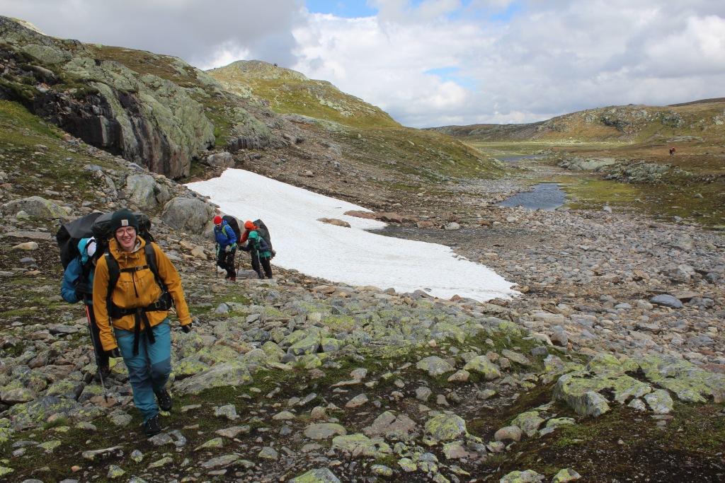 På vei mot Trondsbu: Gjengen nede i Bjoreiddalen for å gå litt av Store Nordmannsslepa østover.
