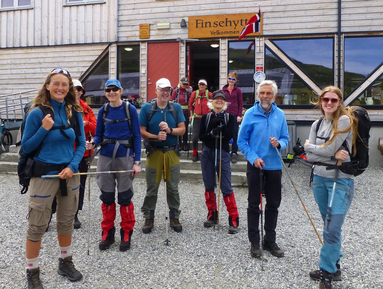 Torsdag: Hele gjengen står klar utenfor Geiterygghytta før avgang mot Steinbergdalen.
