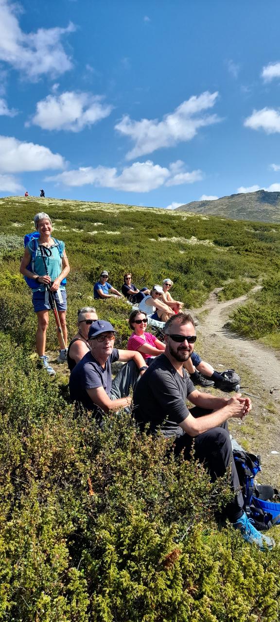Rast i solskinn og varme på vei til Smuksjøseter.