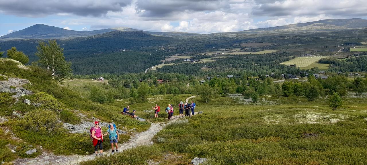 Etter innkvartering og utpakking gikk vi en fin ettermiddagstur i deilig vær på grusveien mot Smuksjøseter. Vi tok av veien ved Klubben og fulgte en liten sti. Etter gåing i litt ulendt terreng opp mot Haukberget endte vi opp på samme vei tilbake. 3 timer og 4 km.