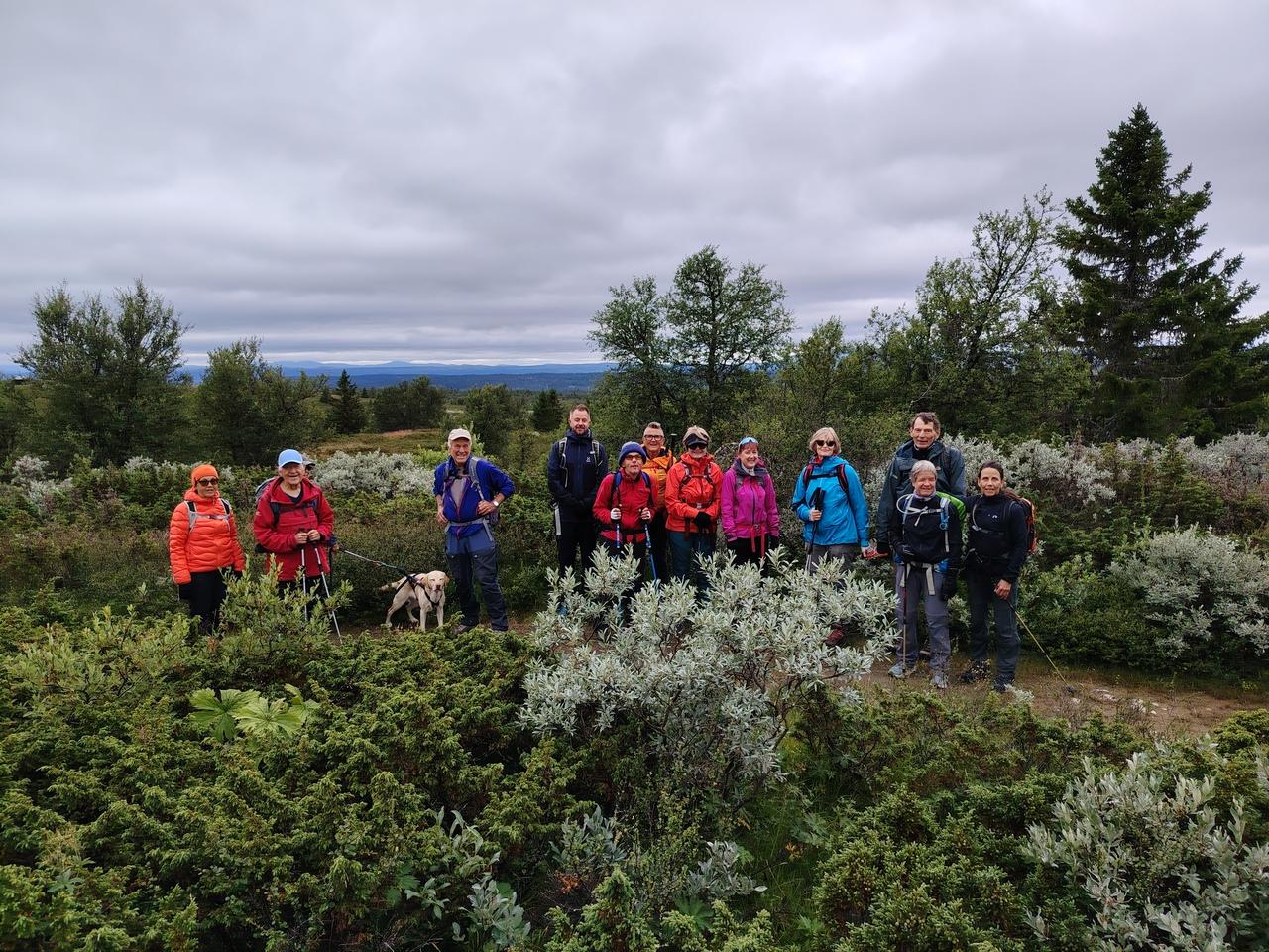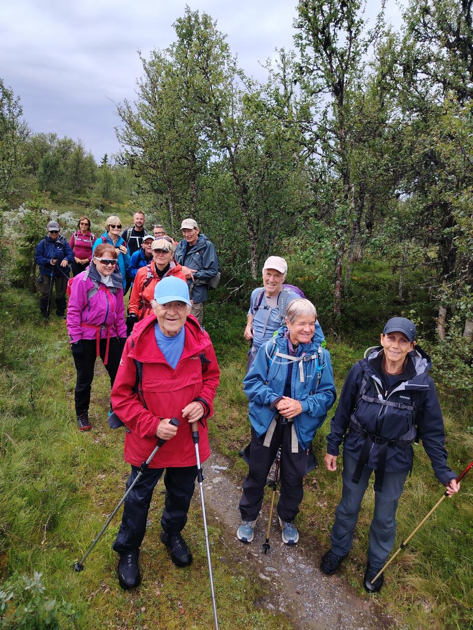 På sti i lett terreng, delvis i bjerkeskog. Oppover til Kantlikappen 1050 moh. Flott utsyn i alle retninger. Ned igjen på fin sti til Lauvåsen kafe. Vi spiste inne og mange koste seg med kaffe og hjemmebakst. Så var det på med regntøy igjen. Vi fulgte grusveien tilbake. Etter middag fikk vi et foredrag om leirskoleliv og historien til Fagerhøy.